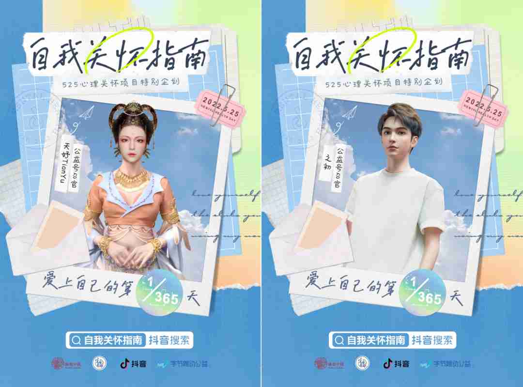 近日,天娛數(shù)科旗下虛擬數(shù)字人“天妤”(賬號名稱:天妤TianYu)和 虛擬數(shù)字人“之初”(賬號名稱:顏之初)作為公益號召官參與了由抖音發(fā)起的“自我關(guān)懷指南”525心理關(guān)懷項目特別企劃。